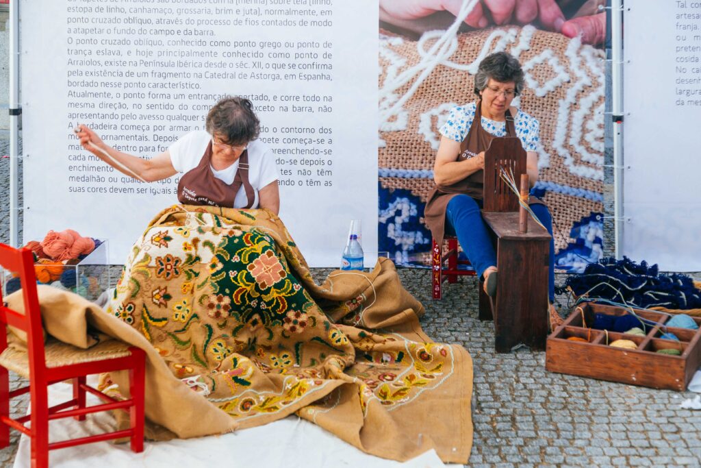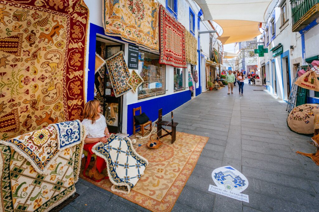 Percorrer as ruas de pedra de Arraiolos é encontrar ateliês e lojas especializadas onde cada tapete é tratado como obra singular. Em maio, o evento “O Tapete está na Rua” transforma a vila em um museu a céu aberto, com peças expostas em fachadas, varandas e praças, acompanhadas de programação cultural que inclui música, exposições e gastronomia regional. O Centro Interpretativo do Tapete de Arraiolos, instalado no antigo Hospital da Misericórdia, na Praça da República, aprofunda o entendimento sobre a tradição, incluindo a antiga atividade de tinturaria local. Próximo dali, o Monumento à Tapeteira e o tapete desenhado em pedra reforçam o orgulho coletivo pela arte. A experiência se completa com a visita ao Castelo de Arraiolos, fortificação circular erguida no Monte de São Pedro, e com a hospedagem na Pousada de Arraiolos, instalada no Convento de Nossa Senhora da Conceição, do século XVI.