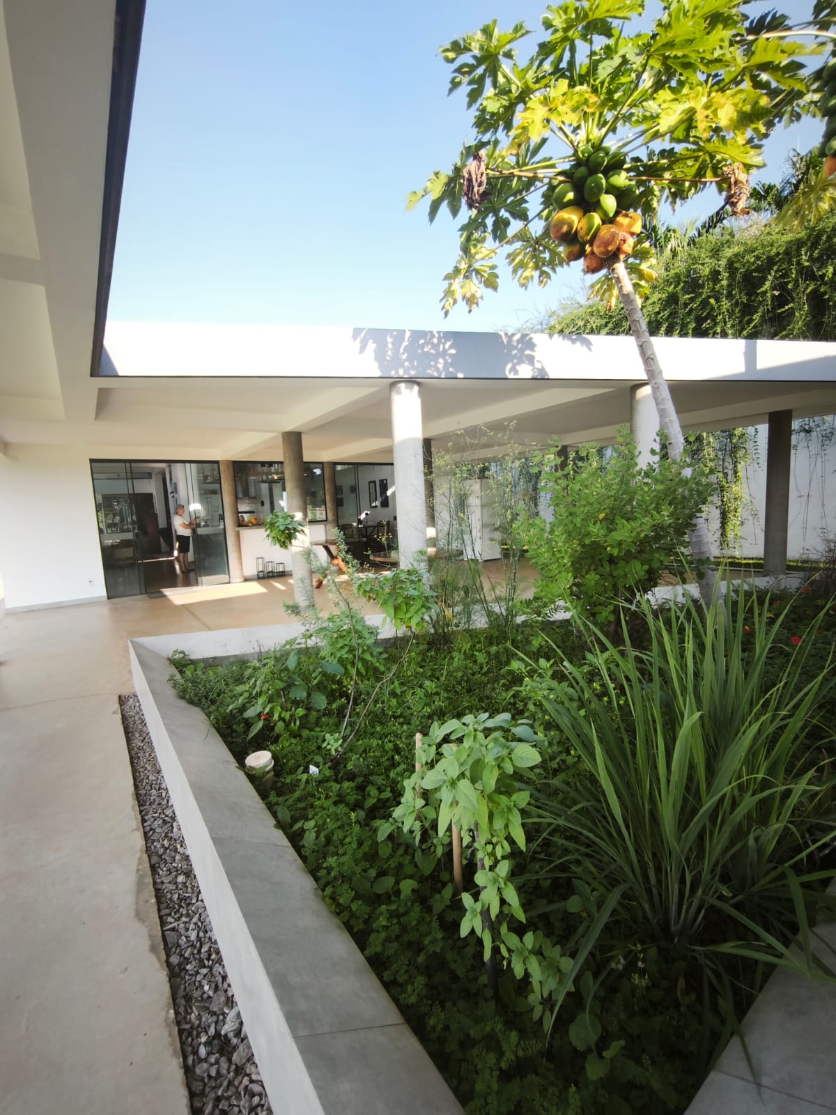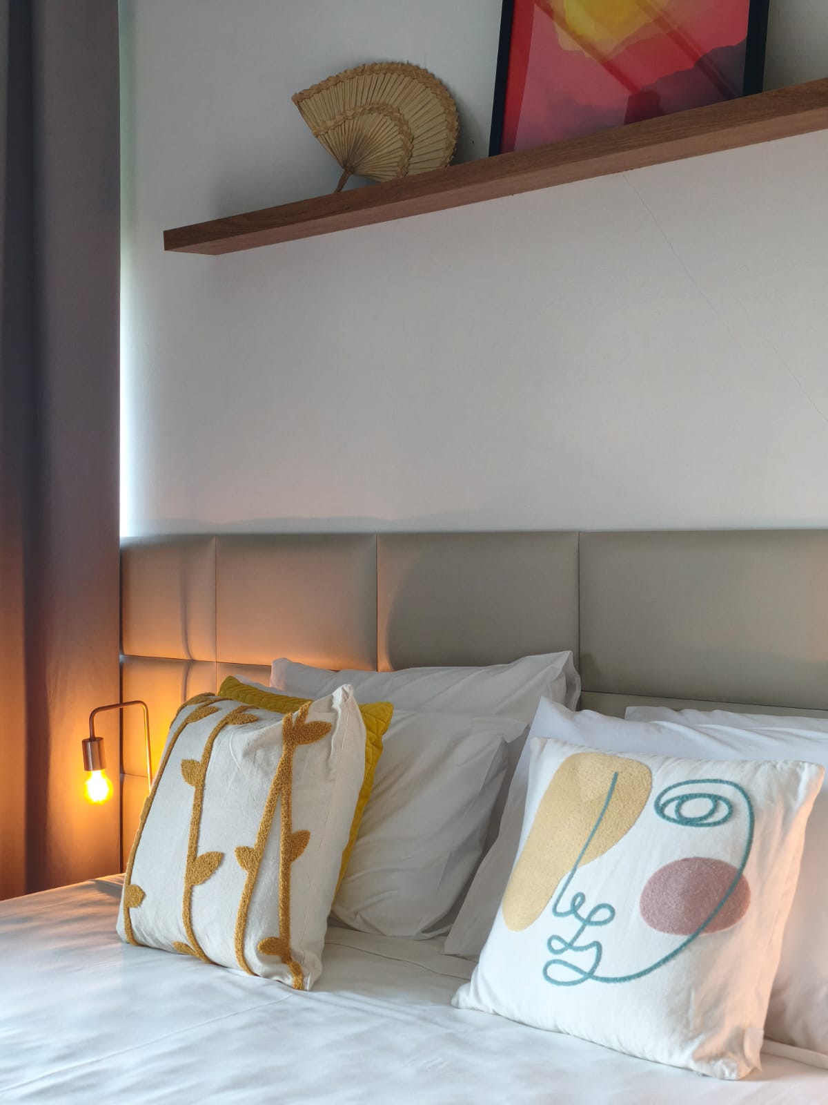O check-in no Adelphos é realizado de forma altamente personalizada. Sem burocracias excessivas, o processo é rápido e acolhedor, permitindo que você se sinta imediatamente bem recebido. Logo na chegada, o lobby com lareira se apresenta como um dos espaços mais convidativos da pousada, especialmente nas noites mais frias da Serra da Mantiqueira onde há uma mini biblioteca. A recepção, desenhada para ser ao mesmo tempo elegante e aconchegante, combina cadeiras de madeira, poltronas acetinadas, tapetes e coleção de quadros. Criando um local perfeito para momentos de pausa, leitura ou uma conversa tranquila. Esse acolhimento se estende aos pátios externos, onde colunas arredondadas suavizam a rigidez do concreto aparente — um dos elementos mais marcantes do projeto. A vegetação, cuidadosamente distribuída, cria um contraste com a arquitetura. O projeto arquitetônico foi assinado por Jeferson Tavares, com interiores desenvolvidos por Georgina Majdalani. Iniciado em 2017, o desenho nos apresenta linhas retas e estética contemporânea, com referências claras a Lina Bo Bardi e Oscar Niemeyer. A composição valoriza a transparência, a entrada de luz natural e a paz. Atualmente, sob nova gestão, o Adelphos continua com o mesmo DNA de quando foi fundado pela família Bonfá: ser um hotel de excelência, que acolhe e que transmite, em cada serviço e produto, muito do amor com que foi concebido.
